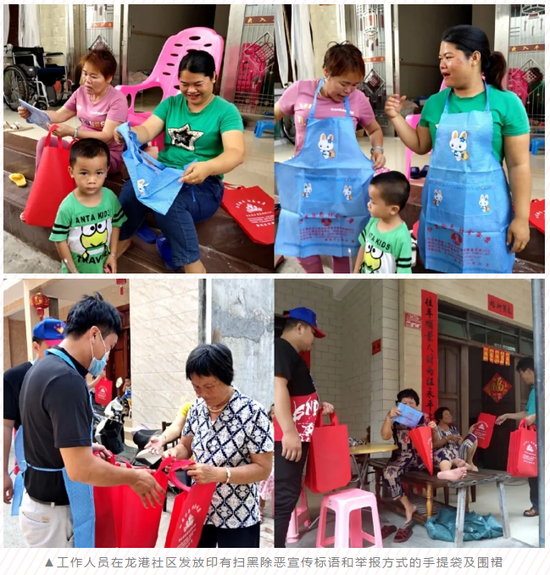 据悉,5月以来,崖州区18个成员单位和32个村(社区)居工作人员入户发放扫黑除恶手提袋及围裙各4000个,进一步提升了辖区群众对扫黑除恶专项斗争的知晓率和参与率。