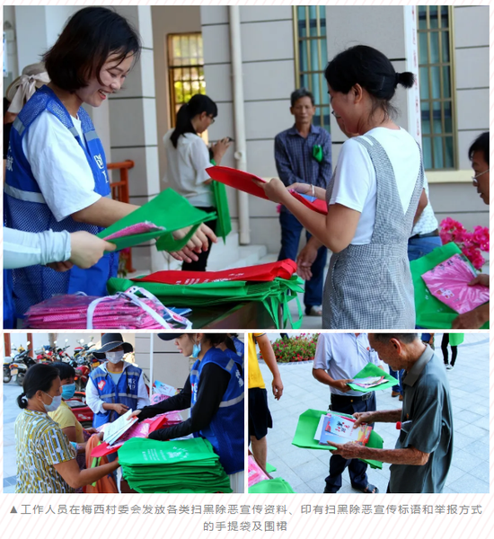 “我们发的袋子、围裙都印有举报电话和邮箱,大家发现涉黑涉恶线索一定要及时举报揭发……”近期,三亚市崖州区18个成员单位和32个村(社区)居工作人员入户开展扫黑除恶宣传工作,向大家介绍扫黑除恶专项斗争内容和揭发黑恶势力的方法,动员广大人民群众积极检举涉黑涉恶,推动扫黑除恶“六清行动”工作的深入开展。