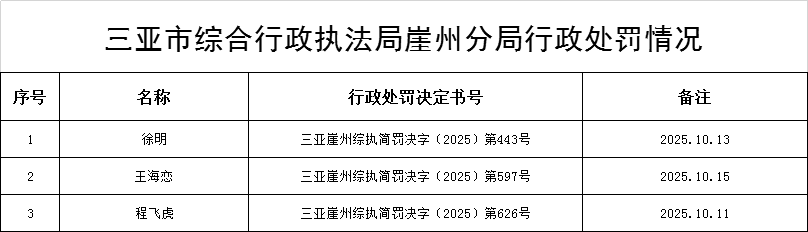 三亚市综合行政执法局崖州分局行政处罚情况