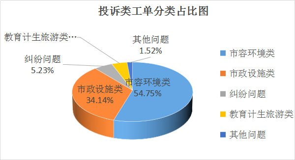 区指挥中心共受理办件6970件,已办结6307件,办结率为91.80%。其中投诉类6392件,占比91.71%;咨询类268件,占比3.85%;其他310件,占比4.45%。